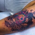 Tetování nadpřirozené bytosti, víla s jednorožcem na paži