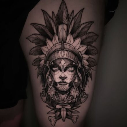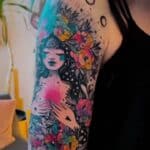 Tetování nadpřirozené bytosti, víla s květinovou korunou