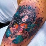 Tetování nadpřirozené bytosti, víla s liškami na paži