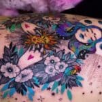 Tetování nadpřirozené bytosti, víla se sluncem na stehně