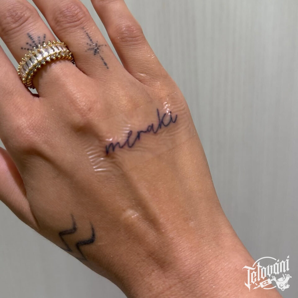 Tetování nápis a hřbetu ruky