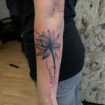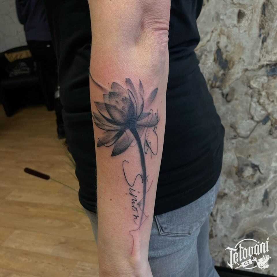 Tetování nápis a květina na předloktí