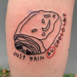 Tetování nápis a znak a symbol čokoláda na lýtko
