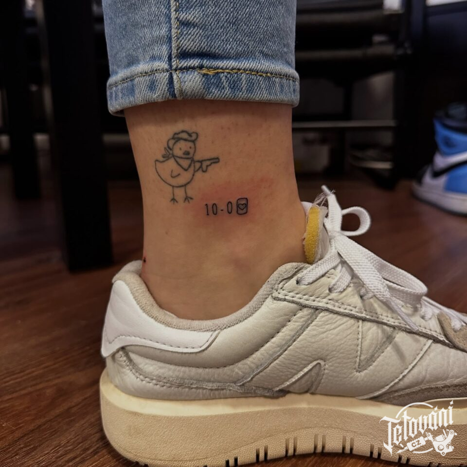 Tetování nápis, čísla a srdce na kotníku