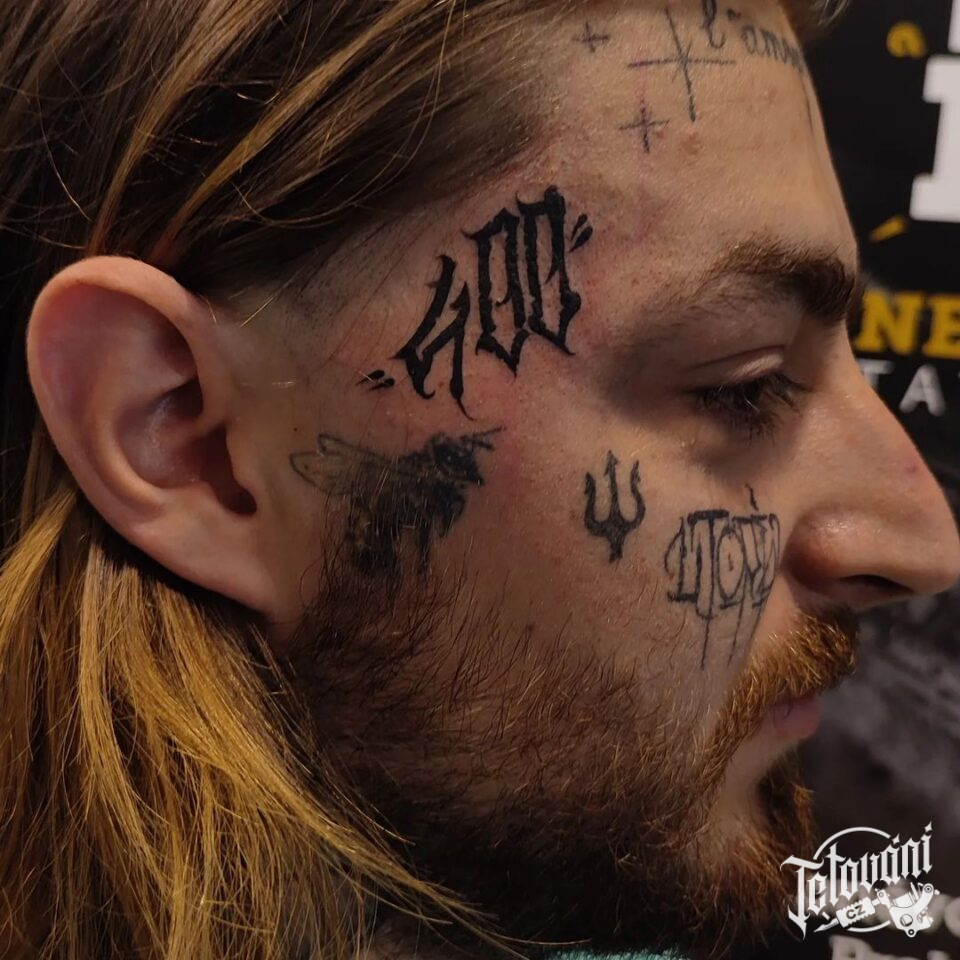 Tetování nápis, čísla na čele