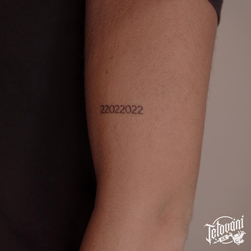 Tetování nápis, čísla na paži