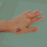 Tetování nápis, číslo na hřbetu ruky