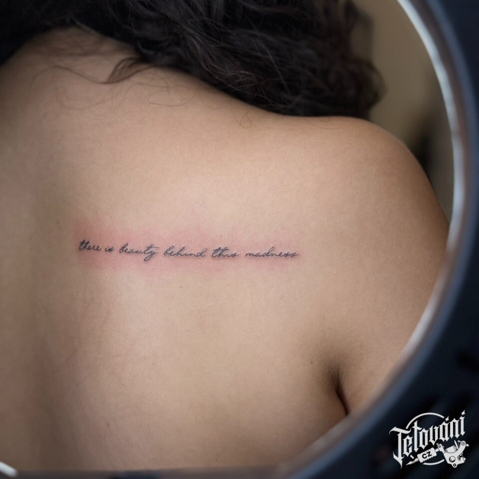 Tetování nápis, citát na lopatku