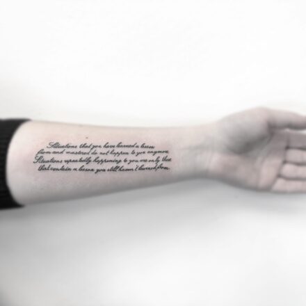 Tetování nápis, citát na předloktí