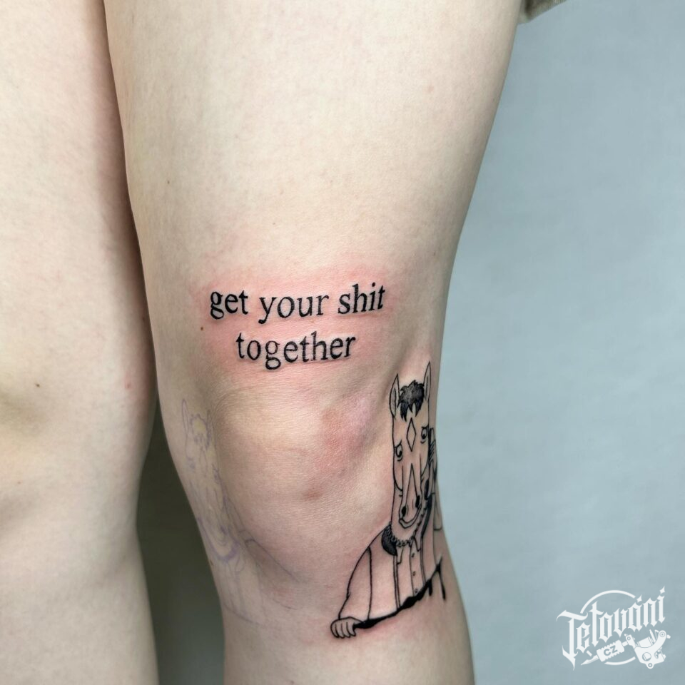 Tetování nápis, citát na stehno