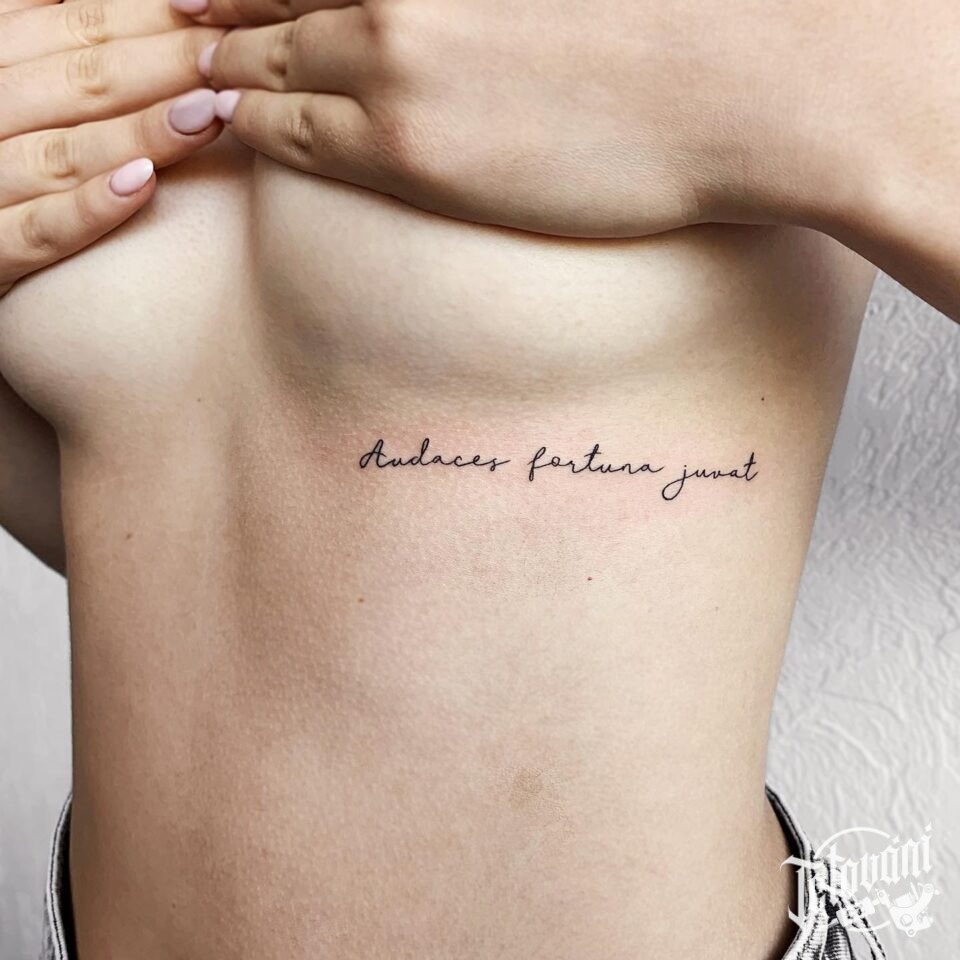 Tetování nápis, citát pod prsa