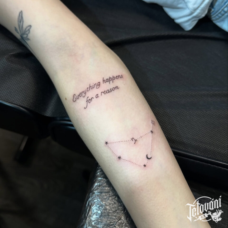 Tetování nápis, citát, souhvězdí kozoroha na předloktí