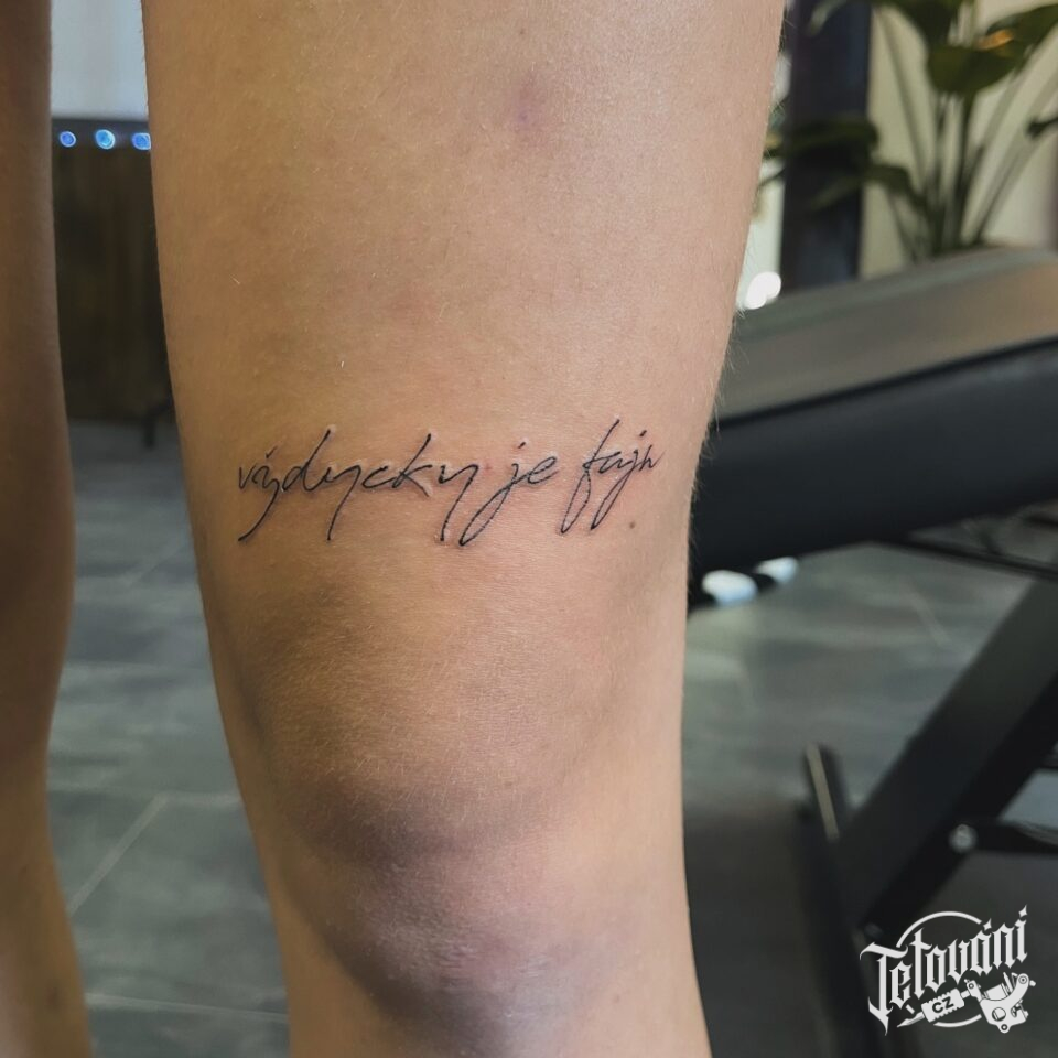 Tetování nápis, citát, symbol na stehno