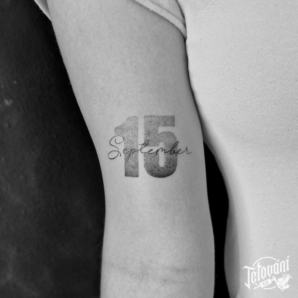 Tetování nápis, datum na paži