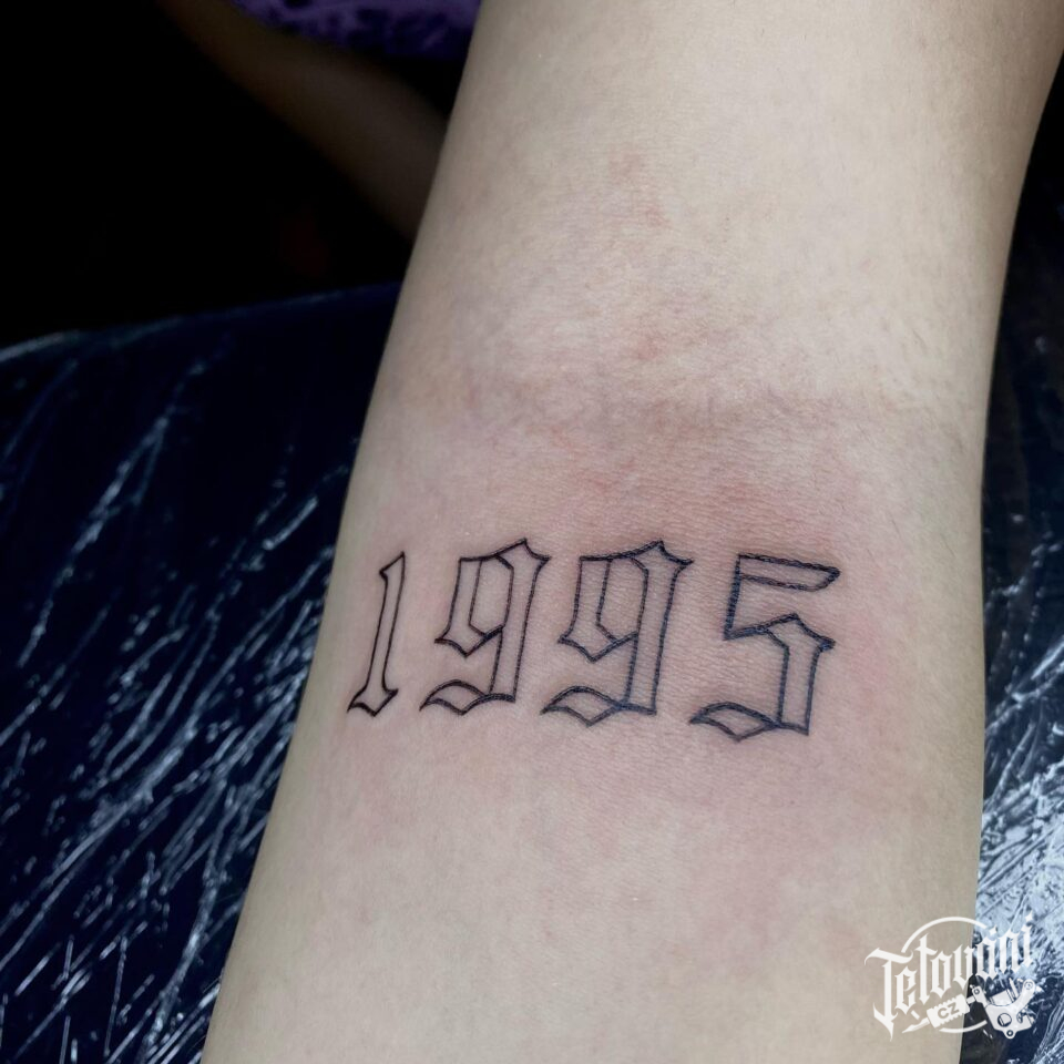 Tetování nápis, datum na předloktí