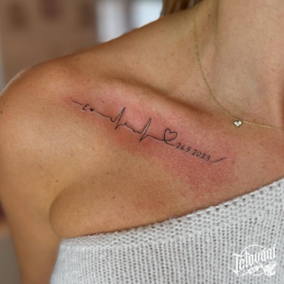 Tetování nápis, datum pod klíční kost