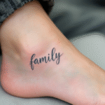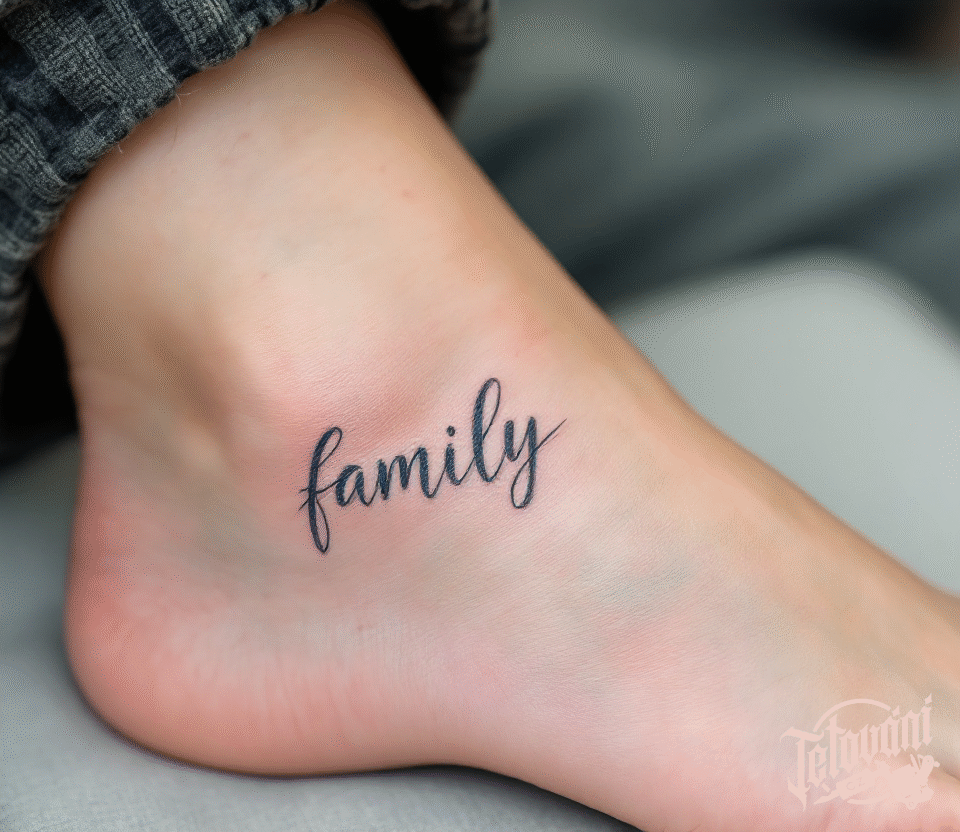 Tetování nápis family na kotníku