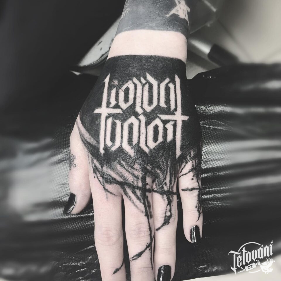 Tetování nápis, hudební skupiny na hřbet ruky
