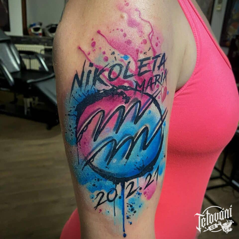 Tetování nápis, jména na rameno