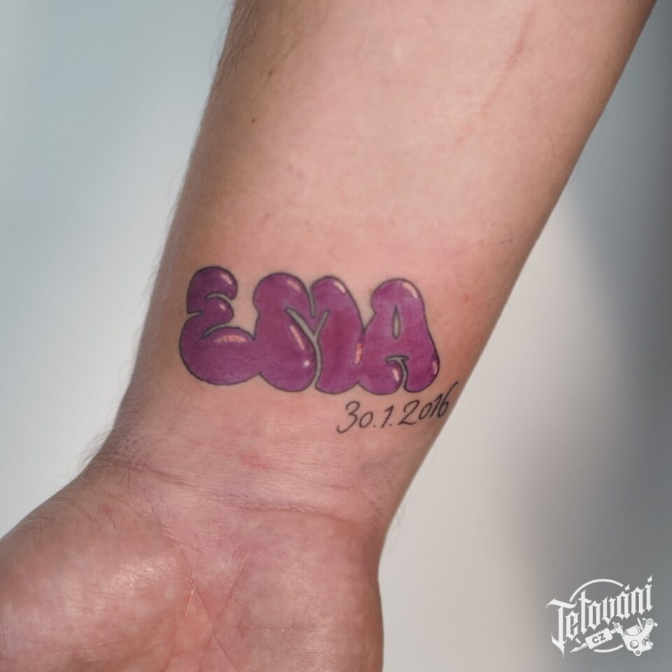 Tetování nápis, jméno a datum na zápěstí