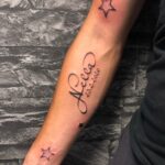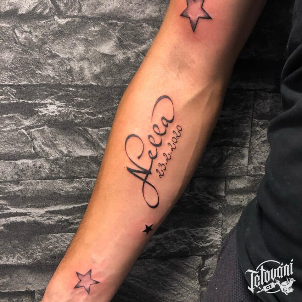 Tetování nápis jméno s datumem na předloktí