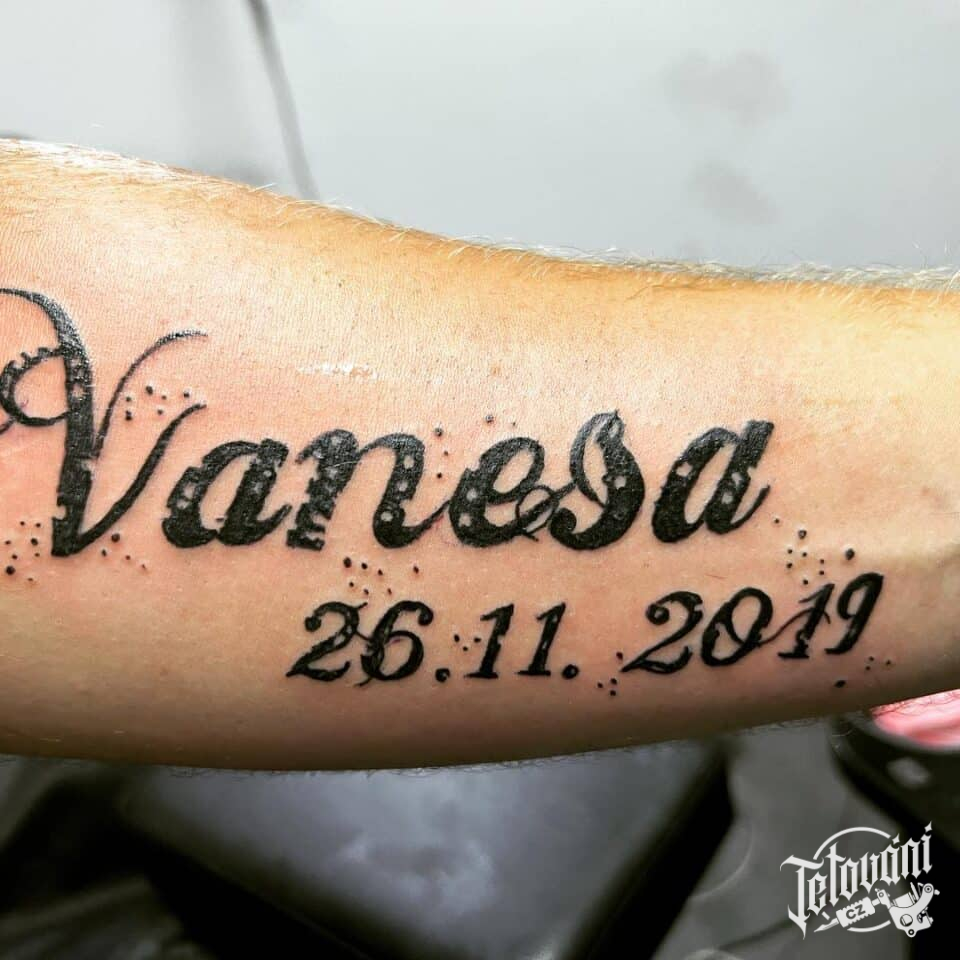 Tetování nápis jméno s datumem na přeloktí