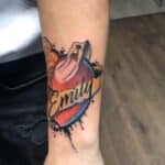 Tetování nápis, jméno se srdcem na předloktí
