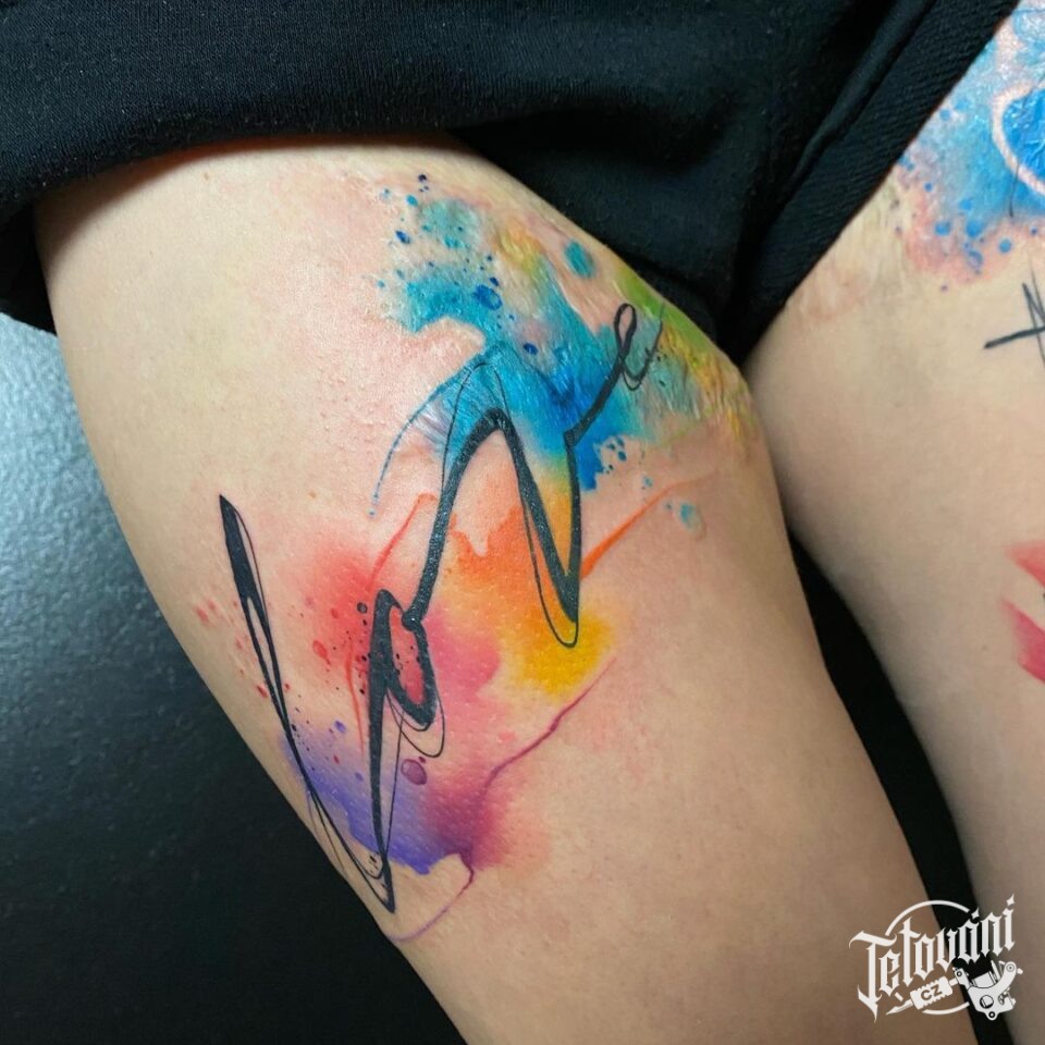 Tetování nápis láska na stehnu