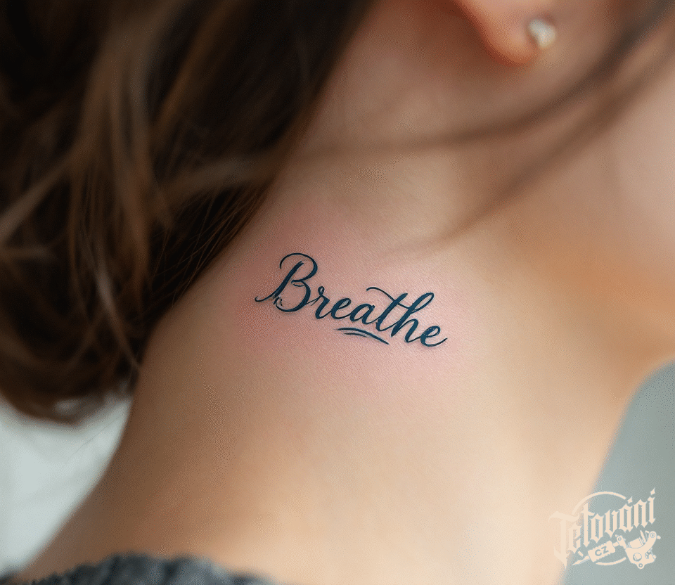 Tetování nápis, motto na krku