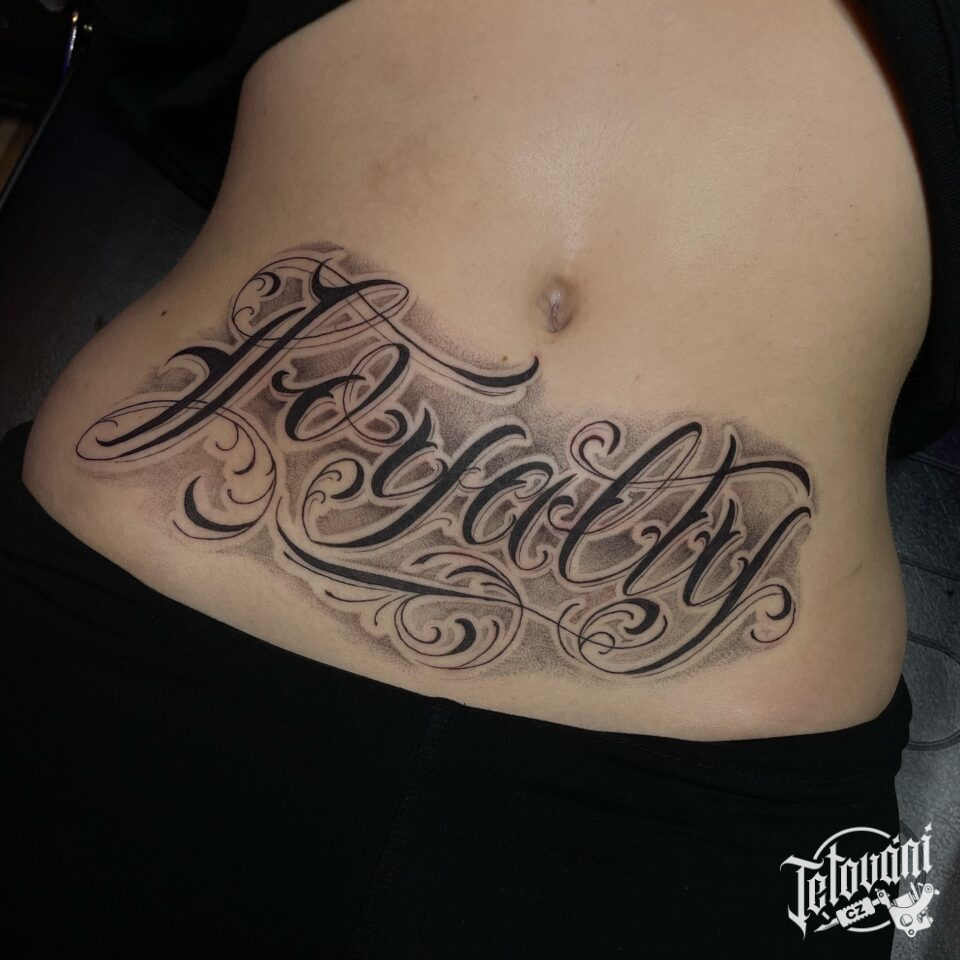 Tetování nápis na břicho