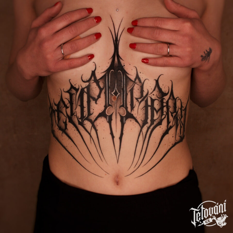 Tetování nápis na břichu