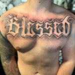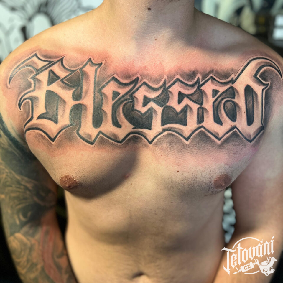 Tetování nápis na hrudi