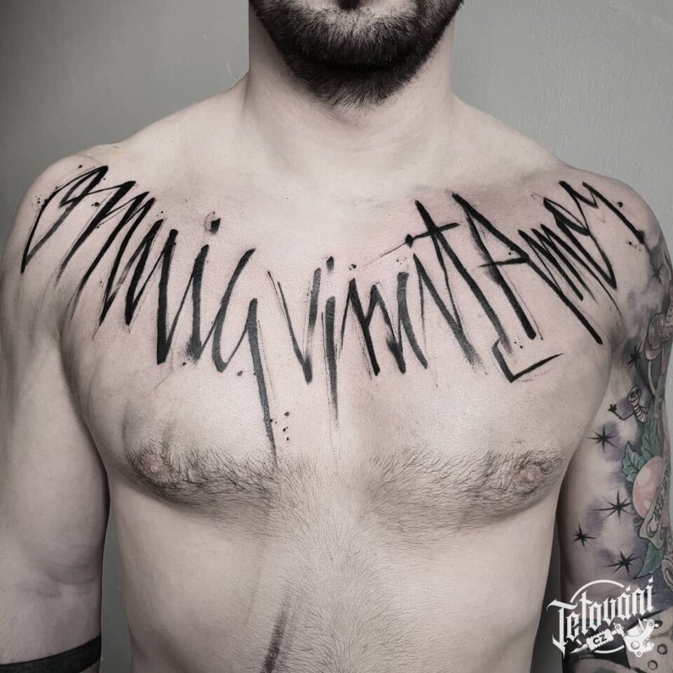 Tetování nápis na hrudi