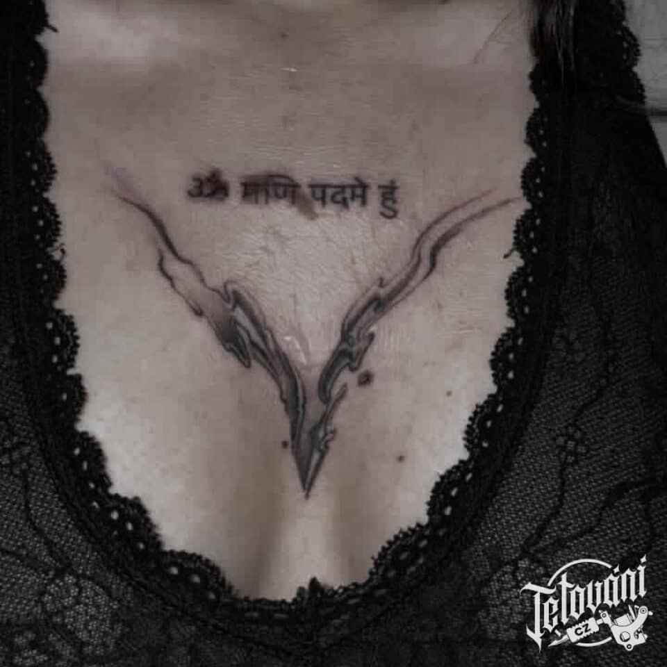 Tetování nápis na hrudi