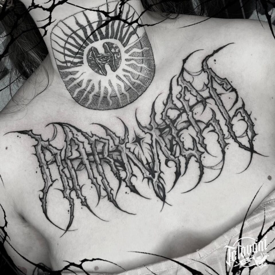 Tetování nápis na hrudi