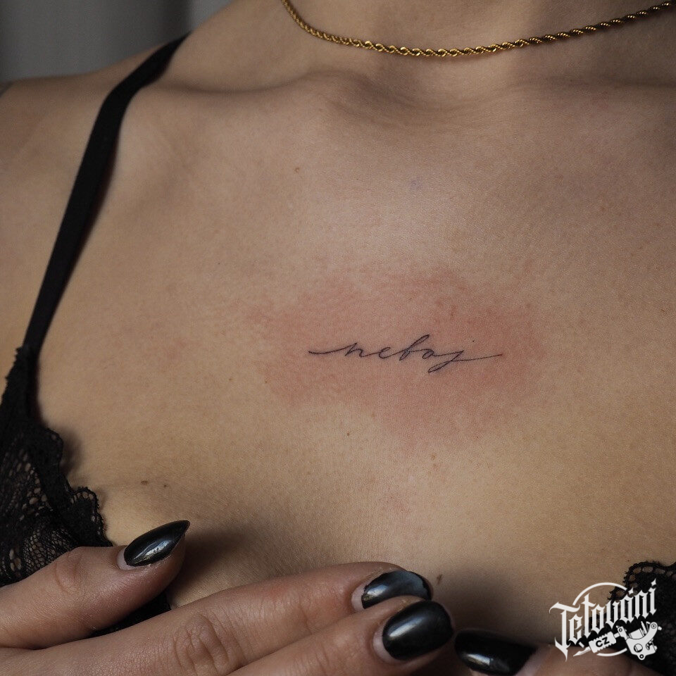 Tetování nápis na hrudi