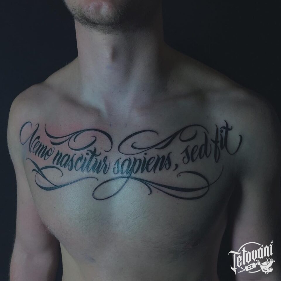 Tetování nápis na hrudi