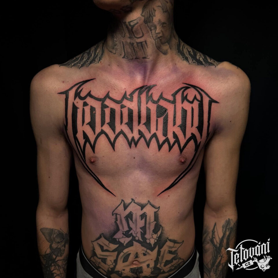 Tetování nápis na hrudník