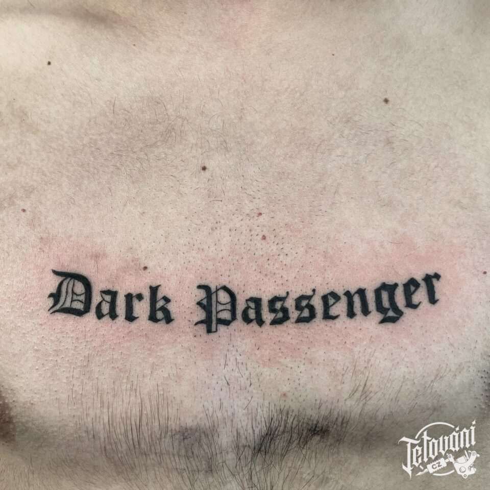 Tetování nápis na hrudníku
