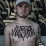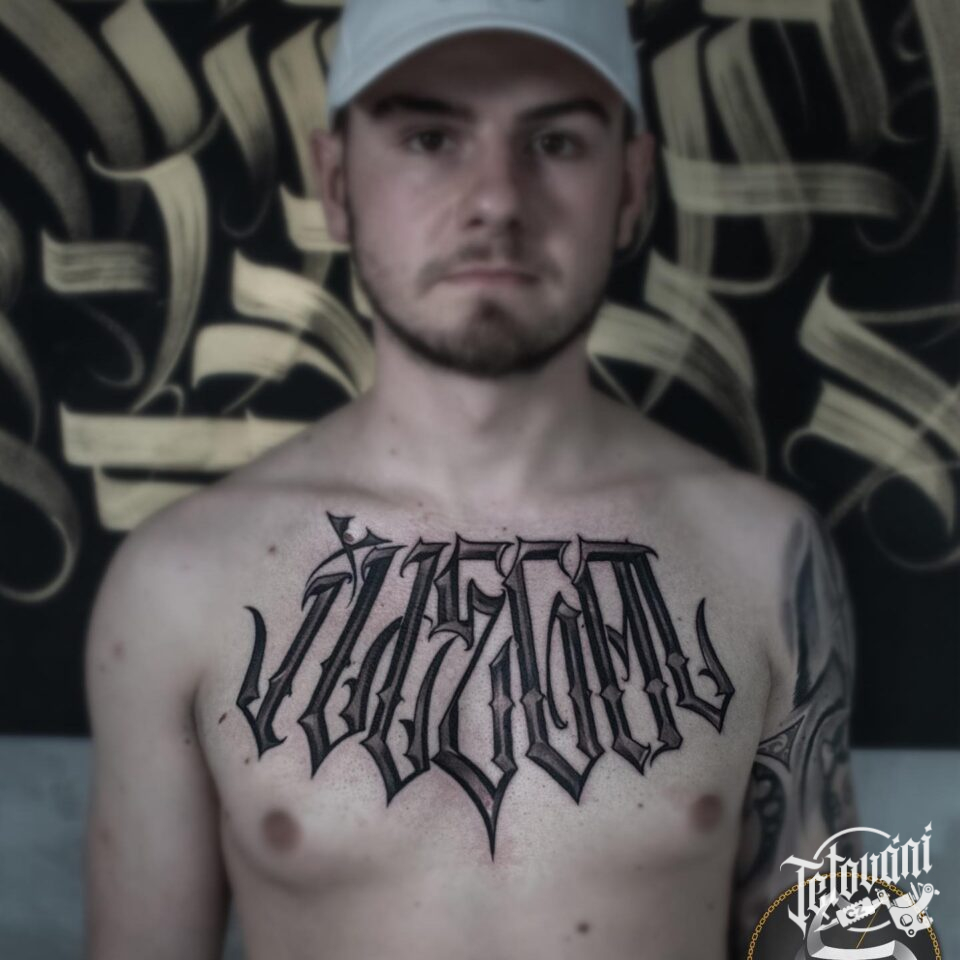 Tetování nápis na hrudníku