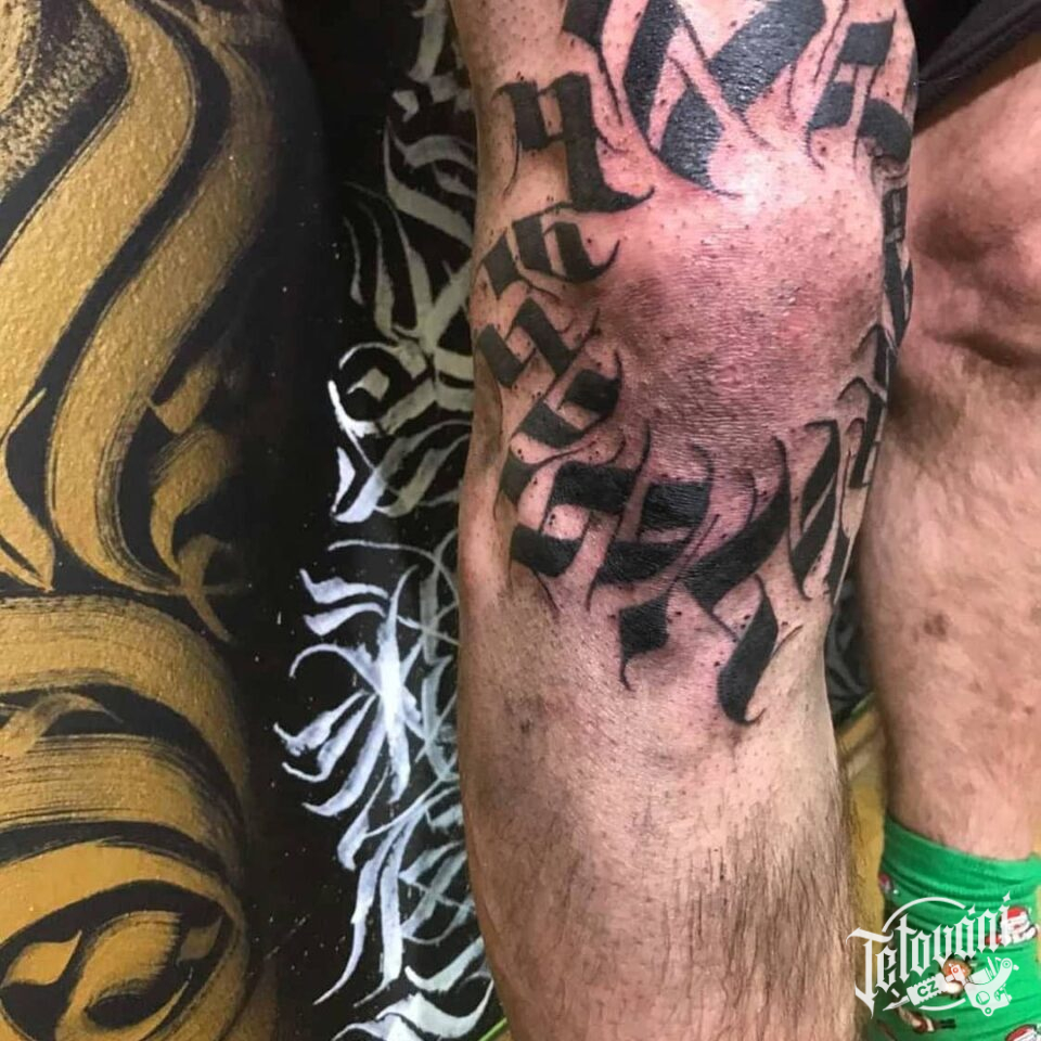 Tetování nápis na koleni