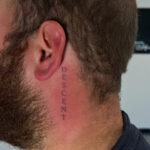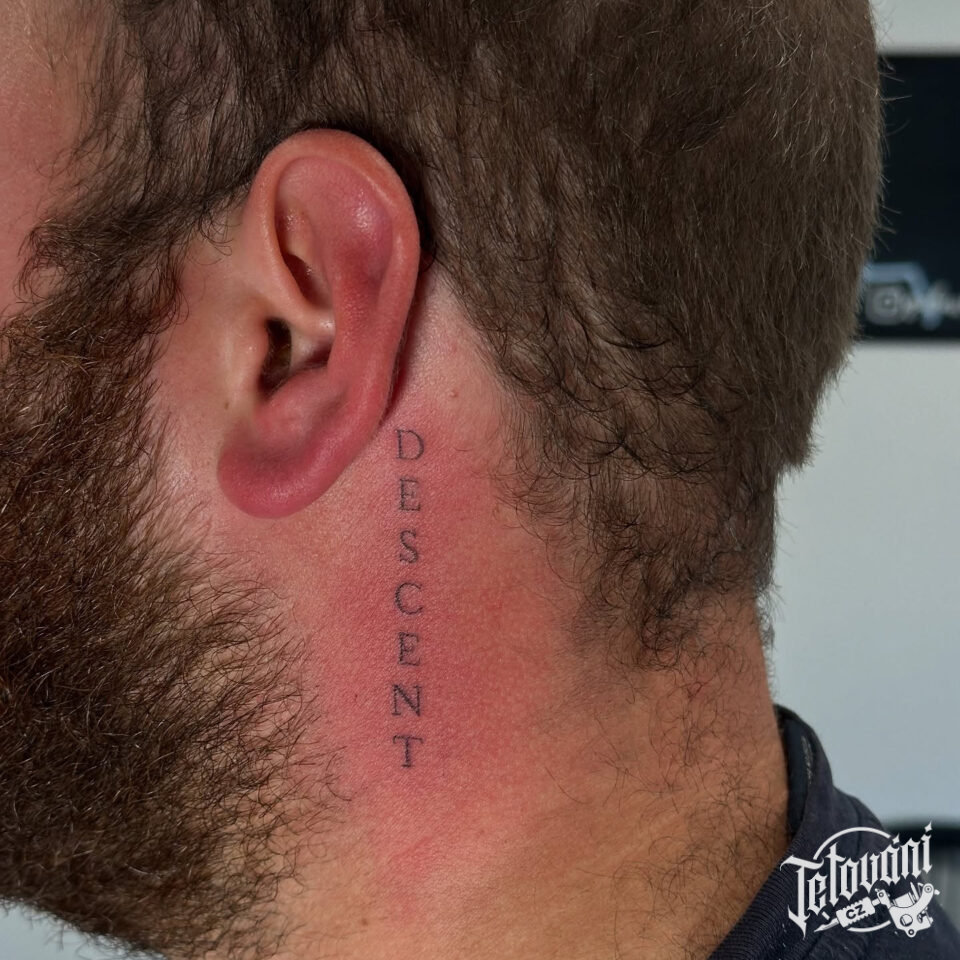 Tetování nápis na krku za uchem