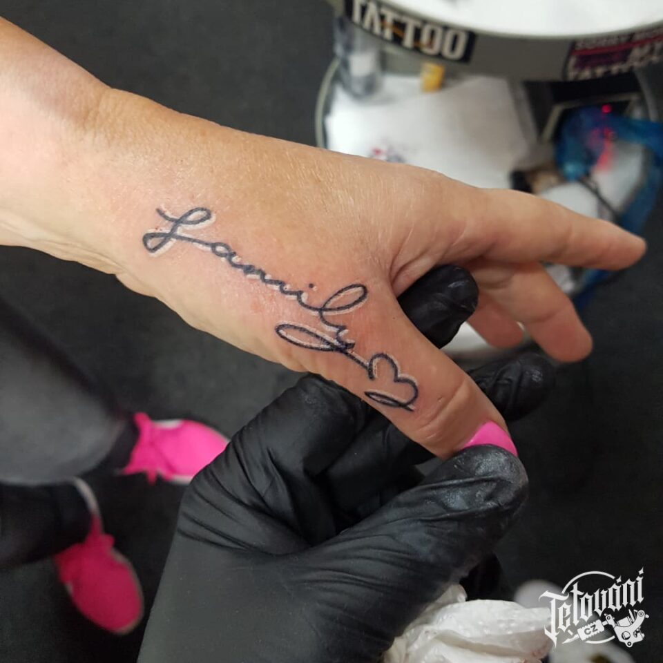 Tetování nápis na prst