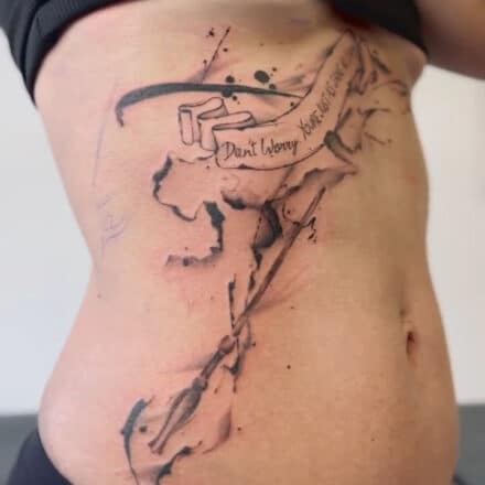 Tetování nápis na stehně