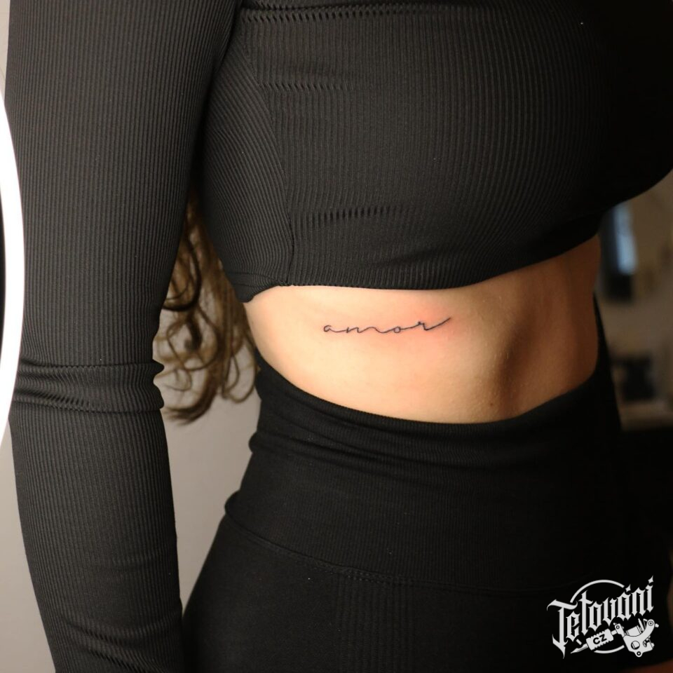 Tetování nápis na žebra