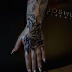 Tetování nápis, ornamenty na hřbetu ruky