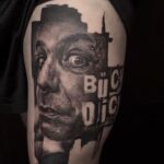 Tetování nápis, osobnost Till Lindeman na stehno