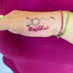Tetování nápis, periodická soustava prvků na ruku