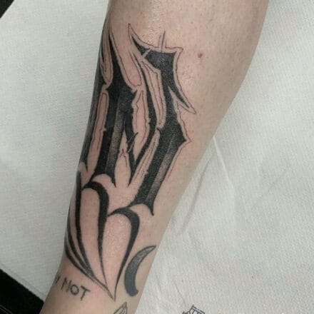 Tetování nápis, písmena na lýtku