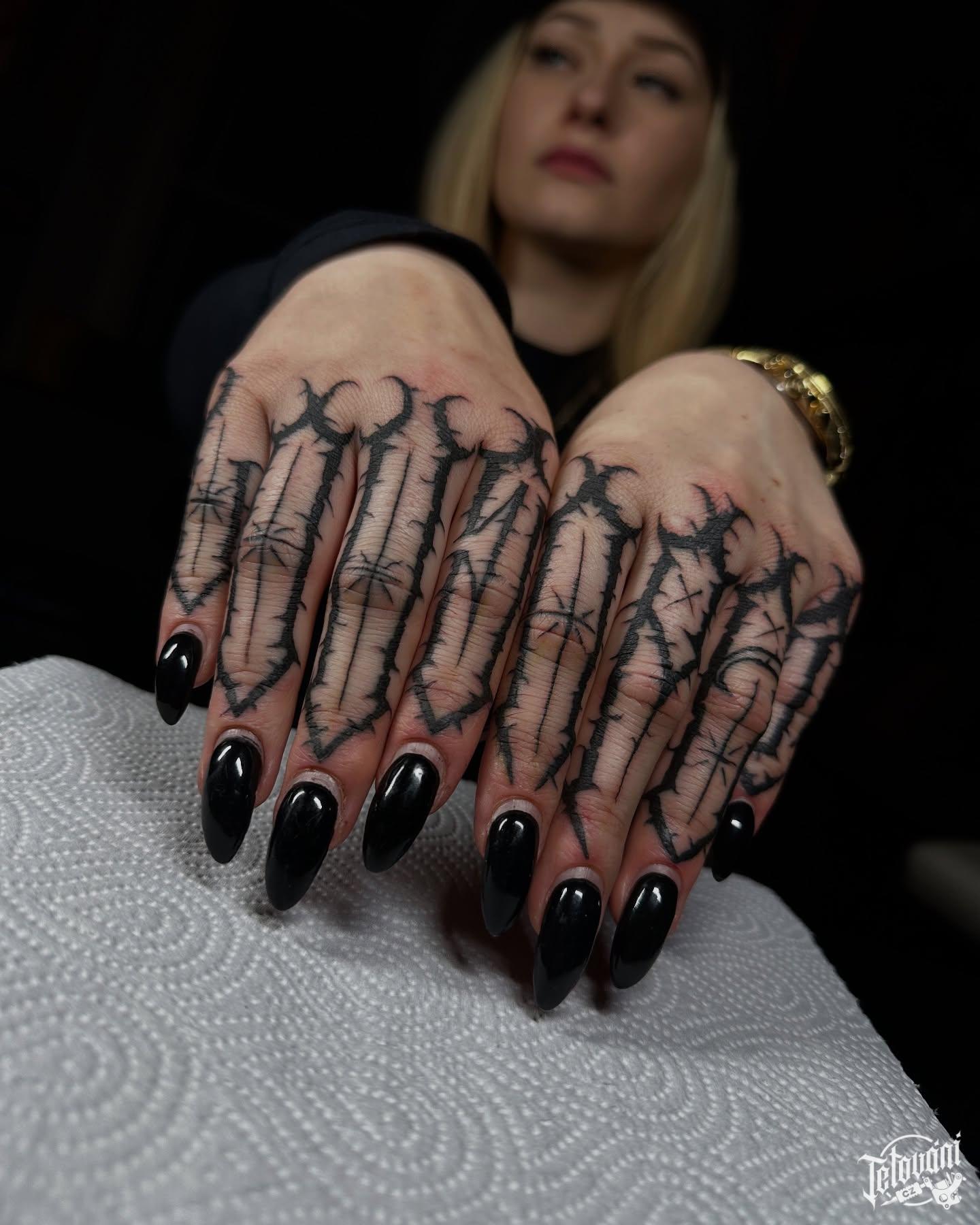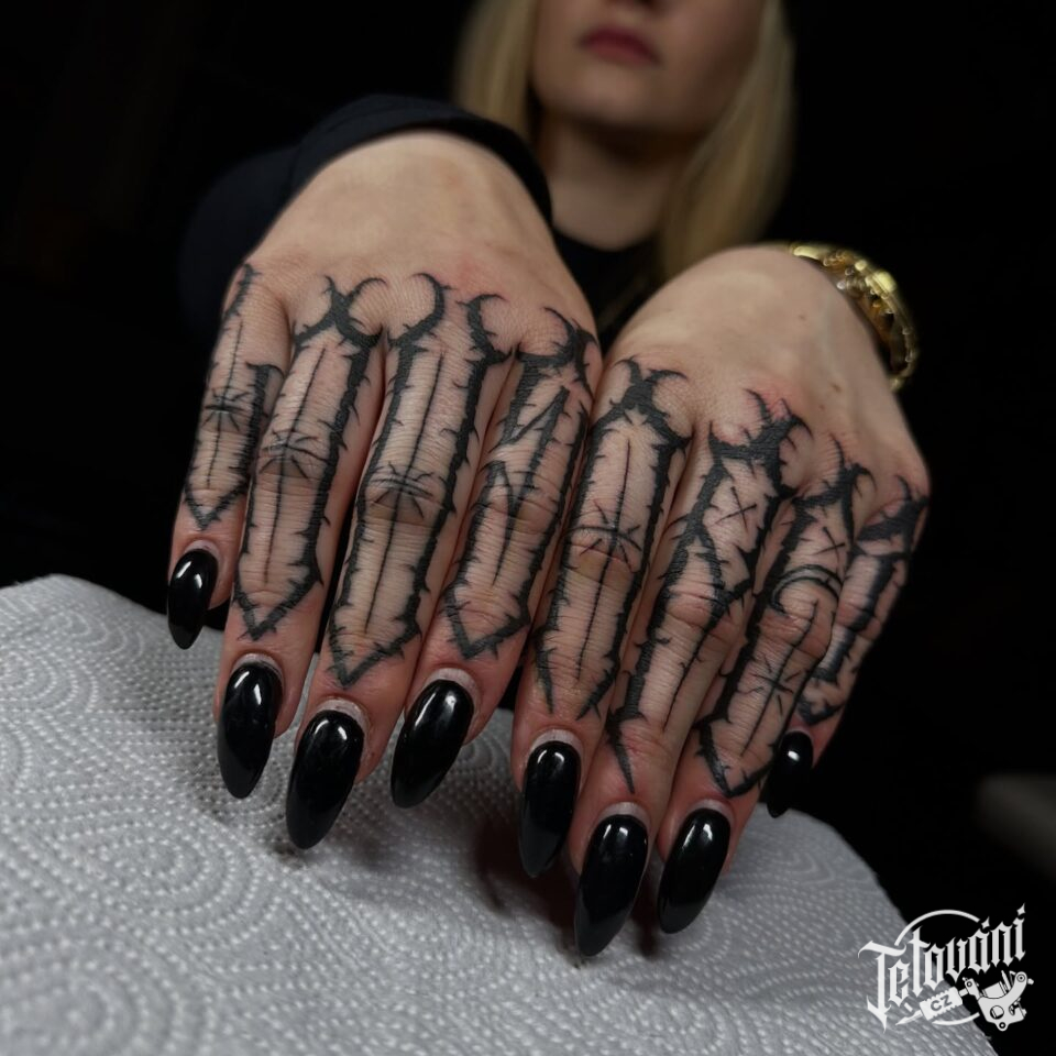 Tetování nápis, písmena na prsty